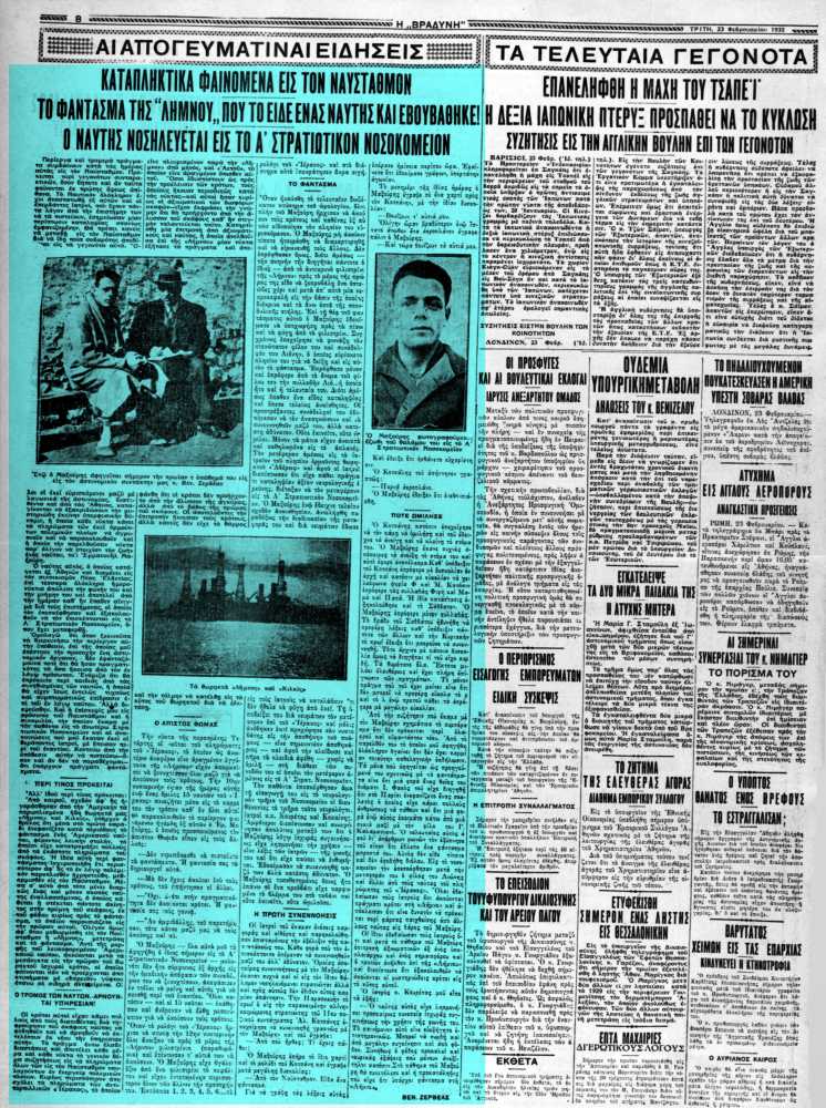 Η είδηση δημοσιεύθηκε στην εφημερίδα «Η ΒΡΑΔΥΝΗ», στις 23/02/1932