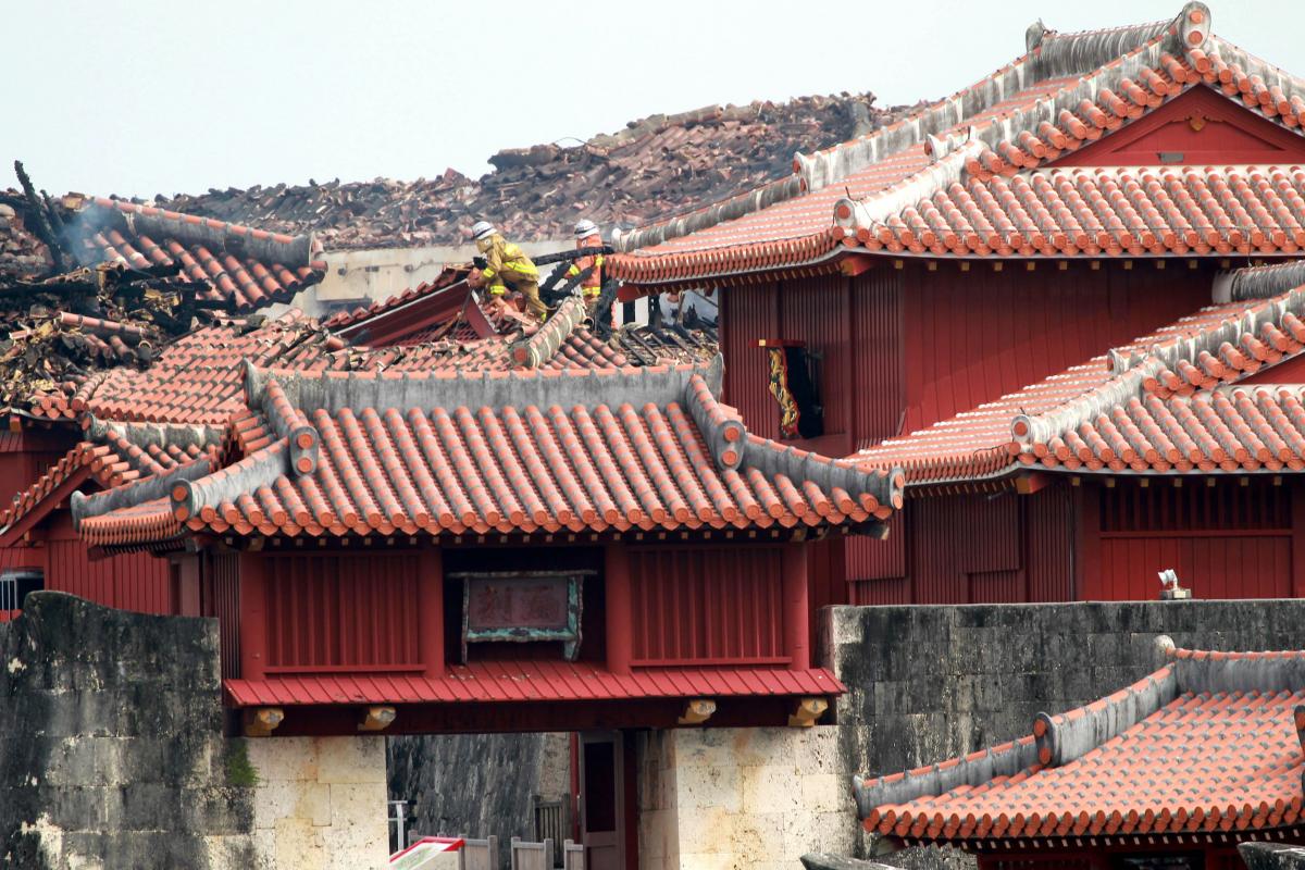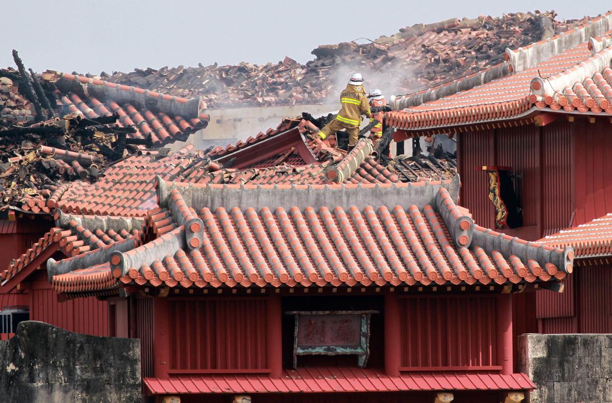 Τηλεοπτικές εικόνες που μεταδόθηκαν στη διάρκεια της νύκτας έδειξαν τεράστιες φλόγες να καταστρέφουν το ιστορικό συγκρότημα, το οποίο βρίσκεται σε έναν λόφο πάνω από την πόλη Νάχα, την πρωτεύουσα της Οκινάουα.
