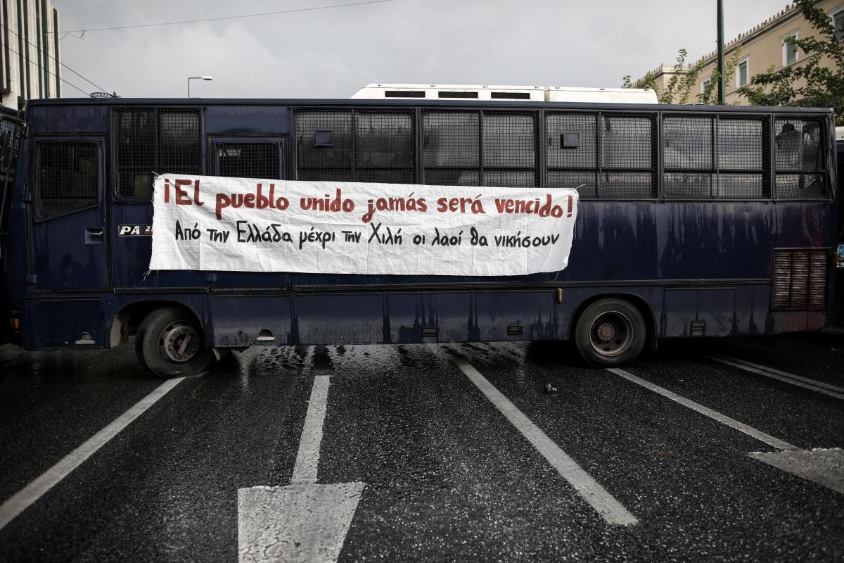 «Από την Ελλάδα μέχρι τη Χιλή οι λαοί θα νικήσουν», έγραφε ακόμα το πανό των φοιτητών.