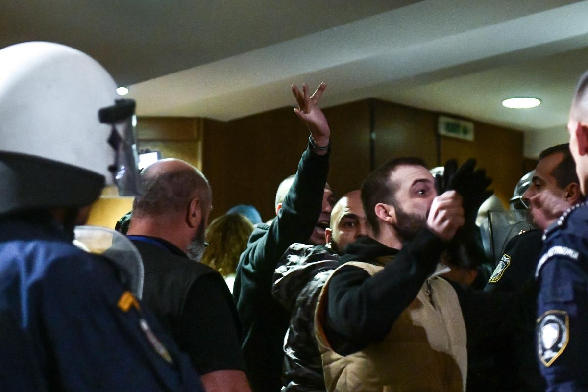 Τη στιγμή που ο Ν. Μιχαλολιάκος αποχωρούσε σημειώθηκαν εντάσεις ανάμεσα σε αντιφασίστες αλληλέγγυους της οικογένειας Φύσσα, οι οποίοι τον αποκαλούσαν δολοφόνο, με τους χρυσαυγίτες να απαντούν με το σύνθημα “Αίμα τιμή, Χρυσή Αυγή”.
