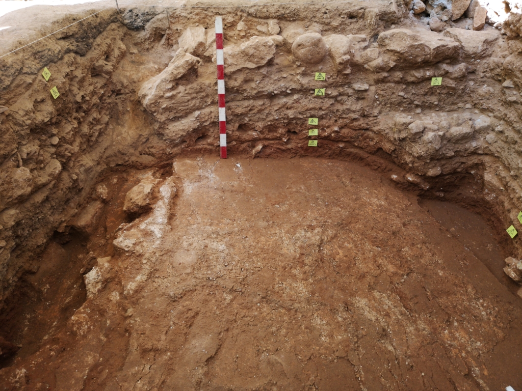Η σύσταση του δαπέδου μελετάται από τη συνεργάτιδα της ανασκαφής και καθηγήτρια του Πολυτεχνείου Κρήτης κ. Νόνη Μαραβελάκη.