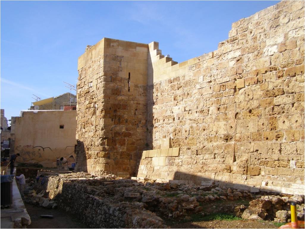 8.Τμήμα του τείχους της αρχαίας, βυζαντινής και ενετικής ακρόπολης της Κυδωνίας, πίσω από το οποίο είναι η ανασκαφή της οδού Κατρέ 1.