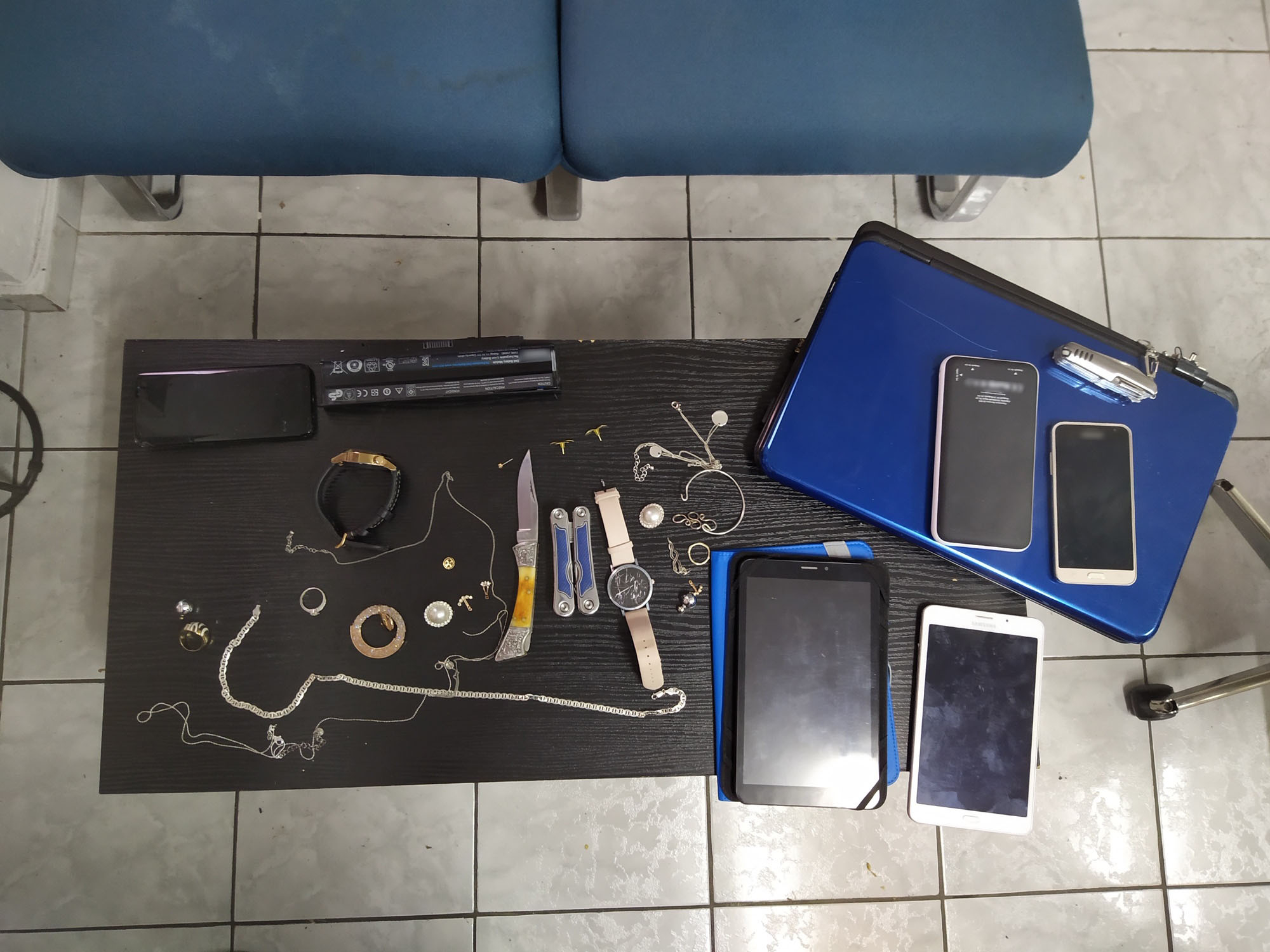 Στις έρευνες που πραγματοποιήθηκαν βρέθηκαν και κατασχέθηκαν: 169 κινητά τηλέφωνα, 53 ηλεκτρονικές συσκευές tablet, 228 εξαρτήματα κινητών τηλεφώνων, 16 μαχαίρια, πτυσσόμενα στιλέτα και σουγιάδες, 115 κάρτες SIM,χρηματικό ποσό 1.790 ευρώ, 2 τηλεοράσεις και πλήθος κοσμημάτων.
