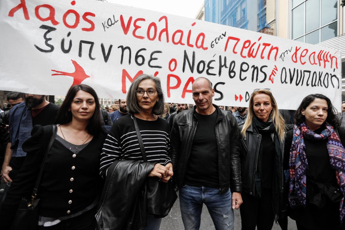 Παρών στην πορεία για την επέτειο του Πολυτεχνείου ήταν και ο γραμματέας του ΜεΡΑ25 Γιάνης Βαρουφάκης μαζί με τη σύζυγό του Δανάη Στράτου και βουλεύτριες του κόμματος.