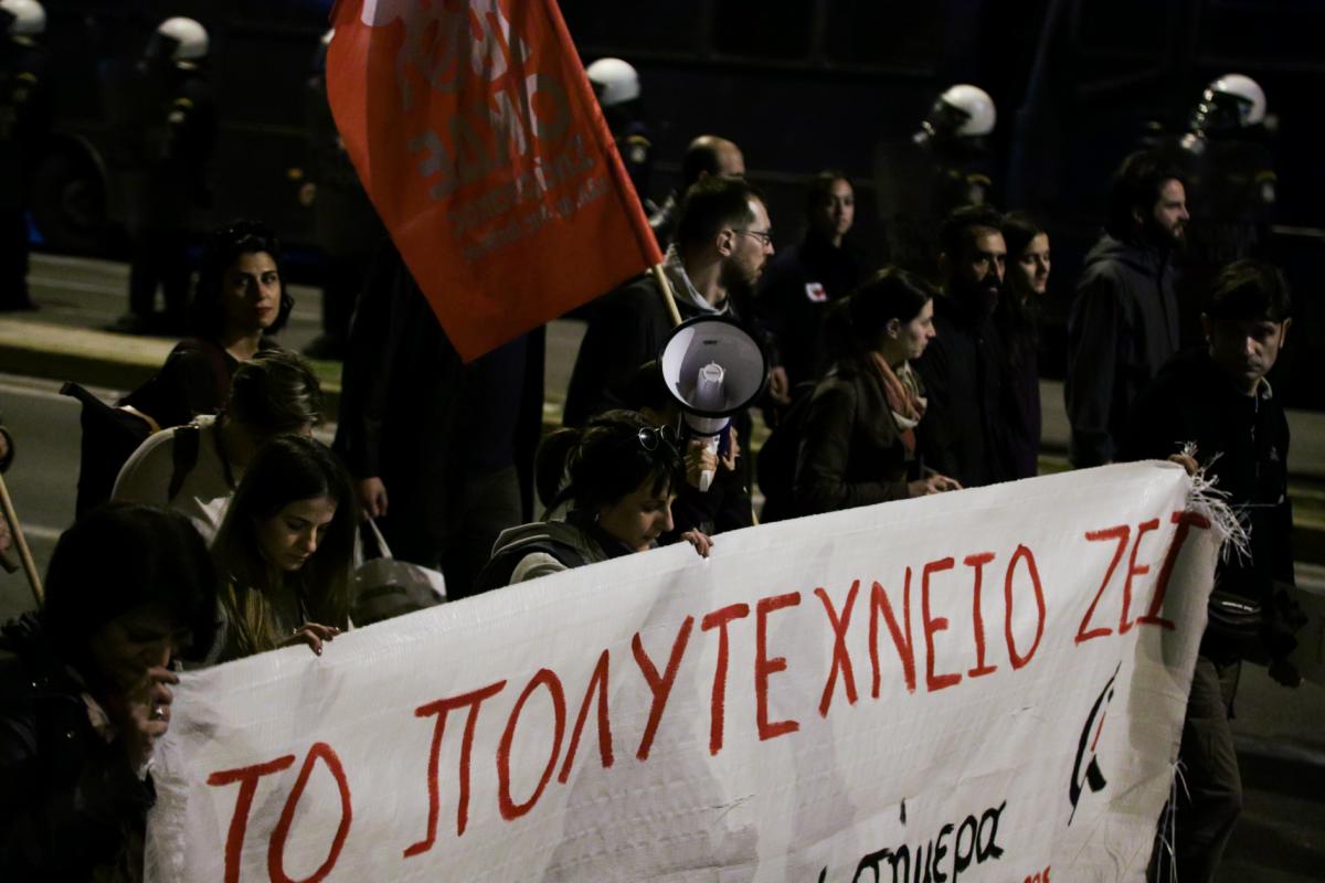 Ολοκληρώνεται η πορεία του Πολυτεχνείου προς την αμερικανική πρεσβεία.