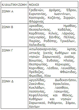 Για τη χορήγηση του επιδόματος πετρελαίου θέρμανσης, η Ελληνική Επικράτεια κατανέμεται σε τέσσερις κλιματικές ζώνες, ως ακολούθως: