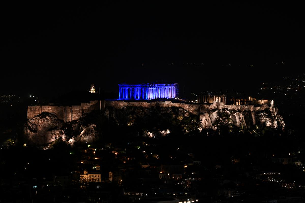 Στα μπλε «βάφτηκε» το βράδυ της Τρίτης ο Παρθενώνας στο πλαίσιο των εορταστικών εκδηλώσεων για την Παγκόσμια Ημέρα Δικαιωμάτων του Παιδιού, που διοργανώνει κάθε χρόνο στις 20 Νοεμβρίου η UNICEF.