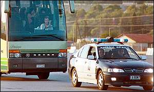 Η ΕΛ.ΑΣ. ενημερώνεται άμεσα και κινητοποιείται. Σε λίγα λεπτά το λεωφορείο είναι περικυκλωμένο από περιπολικά, που κινούνται μαζί με το λεωφορείο, αποκόβοντάς το από τα υπόλοιπα οχήματα που κινούνται στον δρόμο. Από το χωριό Καλπάκι, όπου ευρίσκετο στα πλαίσια της περιοδείας του στην Ηπειρο, ο πρωθυπουργός Κώστας Σημίτης, έκανε την ακόλουθη δήλωση: «Η απαγωγή των τουριστών είναι ένα γεγονός ιδιαίτερα λυπηρό. Οφείλεται σε έναν άνθρωπο σαφώς ψυχοπαθή. Η Αστυνομία έχει εμπειρία για τον χειρισμό τέτοιων καταστάσεων. Έχω δώσει και εγώ τις κατάλληλες εντολές. Προσπάθεια όλων μας είναι να διασωθεί η ζωή των ομήρων και να κλείσουμε την υπόθεση με το καλύτερο αποτέλεσμα. Οι ενέργειες της Αστυνομίας θα είναι θετικές και σύντομες».