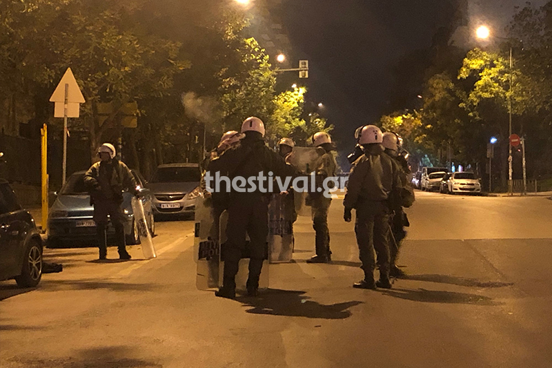Στις 3:20 ομάδα 15 νεαροί βγήκαν από το Αριστοτέλειο Πανεπιστήμιο και κινήθηκαν προς την διμοιρία μέσω της οδού Αγ. Δημητρίου.