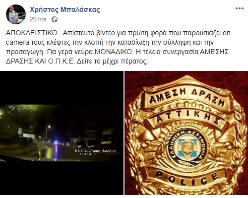 Το επίμαχο βίντεο ανάρτησε στον προσωπικό του λογαριασμό στο Facebook, ο συνδικαλιστής της ΕΛ.ΑΣ., Χρήστος Μπαλάσκας. Μάλιστα, στο εν λόγω βίντεο έχει γίνει μοντάζ, έχει επενδυθεί με μουσική ενώ έχουν «θολωθεί» τα πρόσωπα των δραστών.