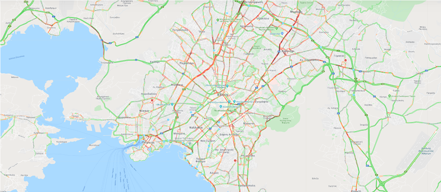 Συμφόρηση επικρατεί στην άνοδο και την κάθοδο της Κηφισίας όπως και στον Κηφισό, από τη Γέφυρα Λυκόβρυσης έως το ύψος της Αχαρνών.