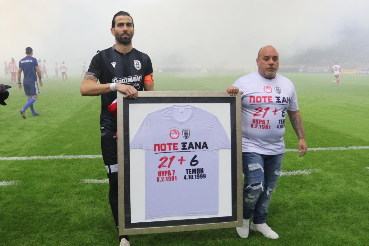 Σε μια συγκινητική κίνηση προχώρησαν Ολυμπιακός και ΠΑΟΚ στο γήπεδο Καραϊσκάκης πριν την έναρξη του ντέρμπι της 12ης αγωνιστικής της Super League..