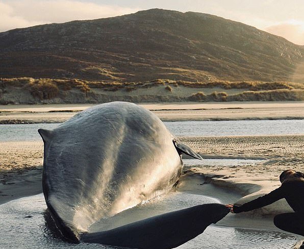 Η ακτοφυλακή και εργαζόμενοι στο Συμβούλιο των Εξωτερικών Εβρίδων βοήθησαν στην εξέταση της φάλαινας το Σάββατο και στην κατασκευή ενός γιγαντιαίου λάκου στην παραλία για τον ενταφιασμό του ζώου.