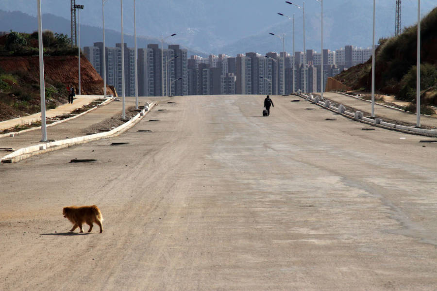 Πανύψηλες ακατοίκητες πολυκατοικίες, άδειες πλατείες, δρόμοι κενοί, τεράστια εμπορικά κέντρα που περιμένουν τους ανύπαρκτους πελάτες τους. Πόλεις-φαντάσματα απλώνονται στην επικράτεια της Κίνας, συνθέτοντας ένα δυστοπικό σκηνικό.