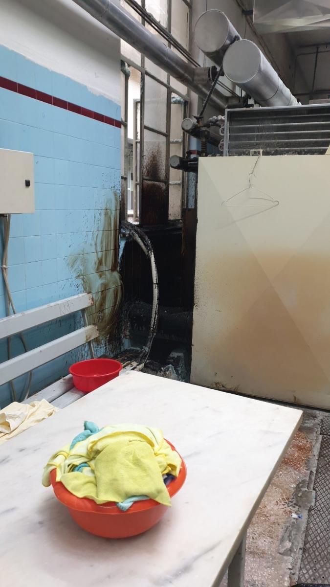 Σύμφωνα με τους εργαζόμενους, η φωτιά προήλθε από σωλήνα των πλυντηρίων που προκάλεσε τη διαρροή καυτών λαδιών στο χώρο.