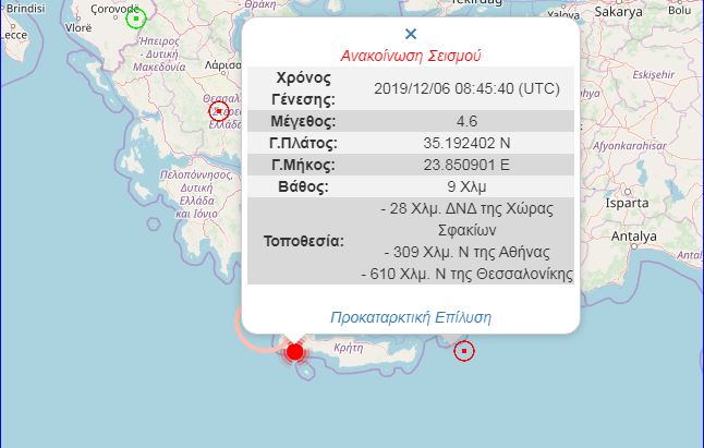 Ο σεισμός είχε μέγεθος 4,6 Ρίχτερ και σύμφωνα με τις πρώτες πληροφορίες έγινε αισθητός σε Χανιά, Ρέθυμνο, Ηράκλειο και Λασίθι.