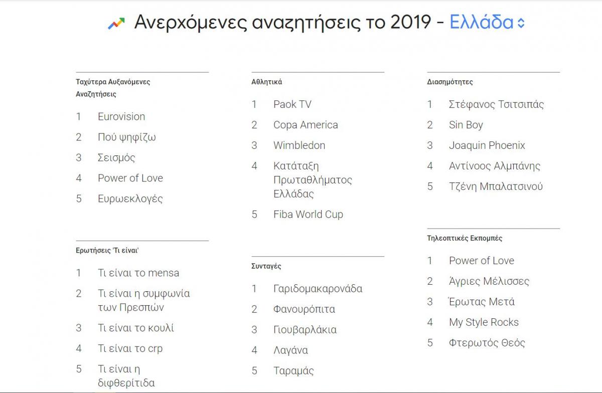 Google search: Οι δημοφιλέστερες αναζητήσεις των Ελλήνων το 2019 - Διασημότητες, συνταγές, πρόγραμμα TV  - Media