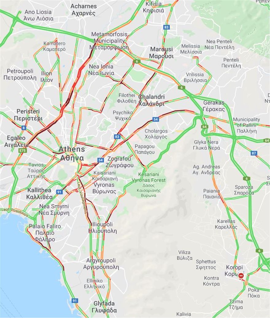 Από τις 7 το πρωί να παρατηρούνται προβλήματα σε κεντρικούς οδικούς άξονες όπως η λεωφόρος Κηφισού και στα δύο της ρεύματα από τη Μεταμόρφωση μέχρι το Αιγάλεω, η κάθοδος της Μεσογείων από το ύψος του Σταυρού, η κάθοδος της Κηφισίας κατα τμήματα, η Ηλιουπόλεως και η Αλεξάνδρας.