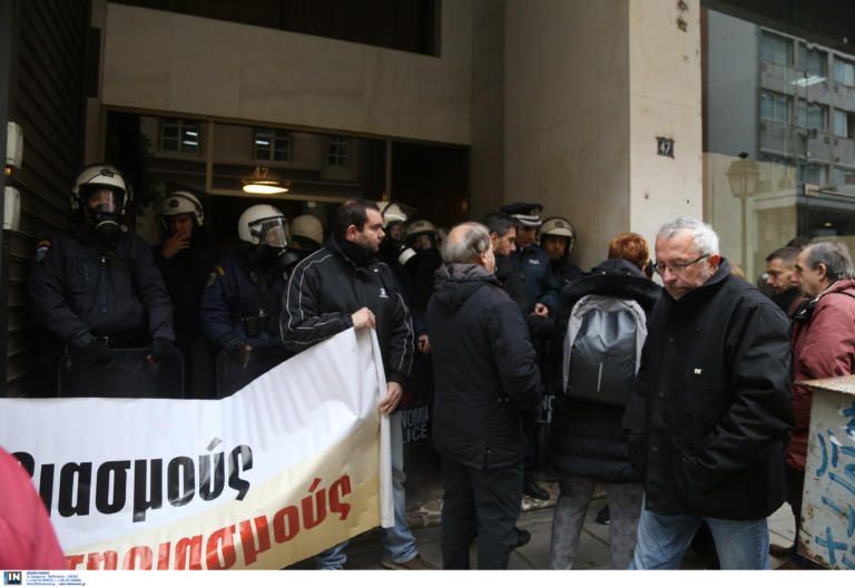 Οι διαδηλωτές ήθελαν να μπουν στην πολυκατοικία, για να συναντηθούν με τον προϊστάμενο του αρμόδιου τμήματος της τράπεζας, προκειμένου να ζητήσουν αναστολή του πλειστηριασμού πρώτης κατοικίας ανέργου και επαναδιαπραγμάτευση του διακανονισμού. Τελικά, μετά από αλλεπάλληλες παρεμβάσεις, αντιπροσωπεία ανέβηκε στον όροφο όπου στεγάζεται το δικαστικό τμήμα και, επειδή ήταν κλειστό, θυροκόλλησε στην είσοδο έγγραφο με το αίτημα για “αναστολή του πλειστηριασμού, ο οποίος διεξάγεται σήμερα πρώτης κατοικίας ανέργου συναδέλφου”, δήλωσε το μέλος της Γραμματείας του ΠΑΜΕ Θεσσαλονίκης, Γιάννης Κουρμούλης, σύμφωνα με τον οποίο πρέπει να γίνει νέα διαπραγμάτευση με τον οφειλέτη, που είχε κάνει πρόταση διευθέτησης του δανείου.