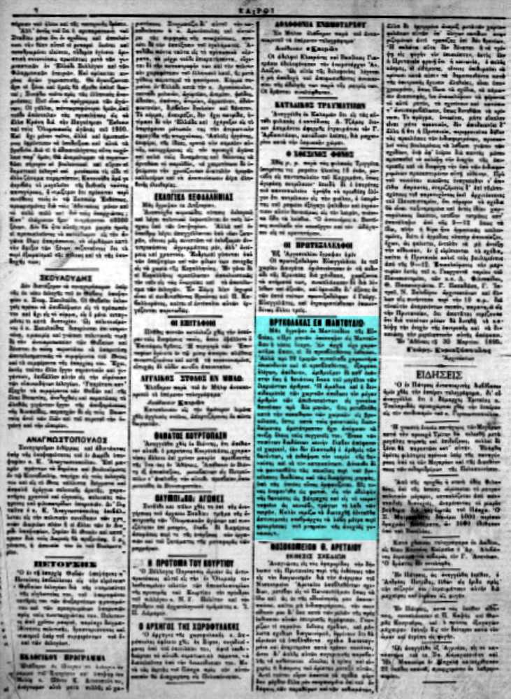 Η είδηση δημοσιεύθηκε στην εφημερίδα “ΚΑΙΡΟΙ”, στις 01/04/1895