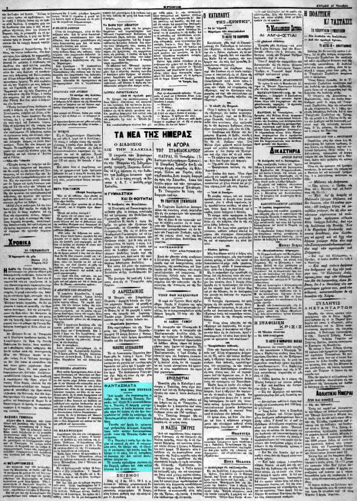 Η είδηση δημοσιεύθηκε στην εφημερίδα “ΧΡΟΝΟΣ”, στις 26/10/1903