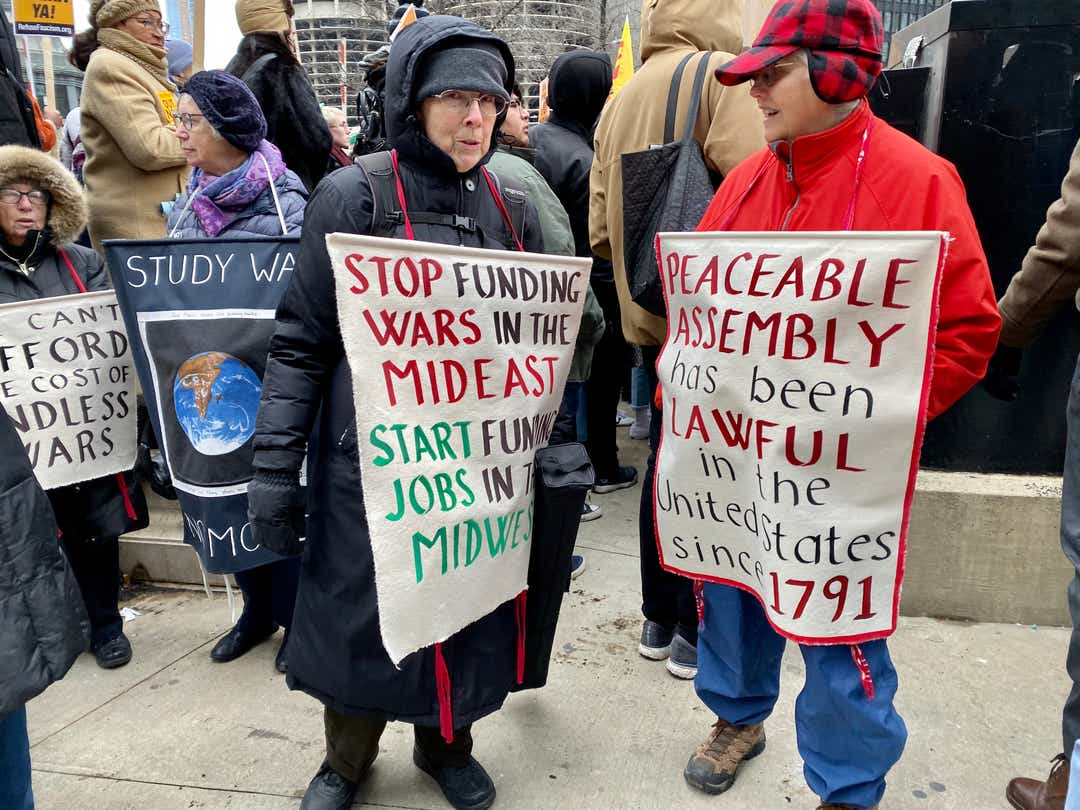 «Χρειάζεστε να στρέψετε αλλού την προσοχή; Ξεκινήστε έναν πόλεμο», έγραφε το πλακάτ που κρατούσε ο 66χρονος Σαμ Κουκ. «Η χώρα αυτή είναι στα χέρια κάποιου που είναι διανοητικά ασταθής, του Ντόναλντ Τραμπ. Φοβάμαι ότι θα ξεκινήσει έναν πόλεμο από απερισκεψία, γιατί πιστεύω ότι δεν το θέλει πραγματικά», είπε.