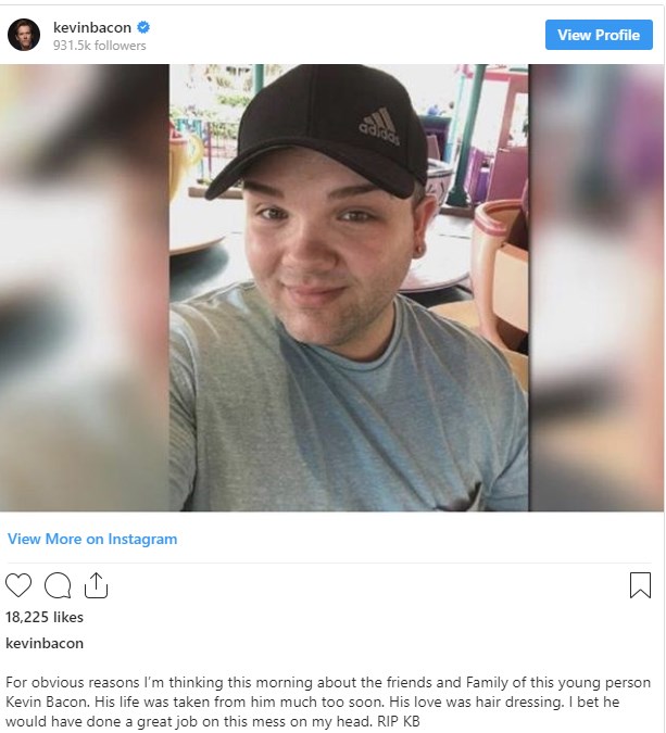 Ο διάσημος ηθοποιός Κέβιν Μπέικον έκανε μια ανάρτηση στον λογαριασμό του στο Instagram σχετικά με τη δολοφονία.