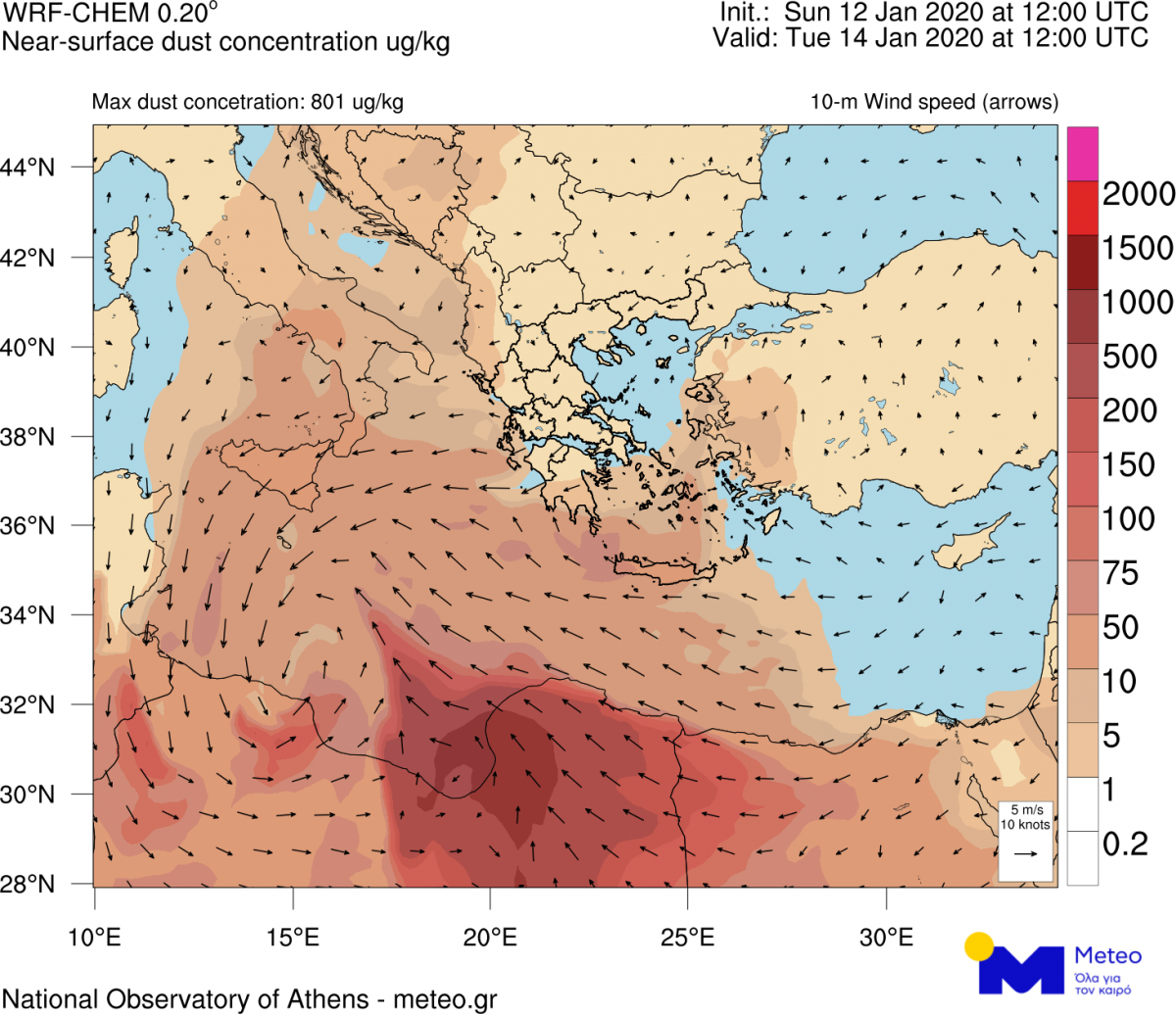 Η δημιουργία των βαρομετρικών χαμηλών αυτού του είδους οφείλεται στη διαφορά των χαρακτηριστικών των επιφανειακών ξηρών αερίων μαζών πάνω από την έρημο Σαχάρα και των υγρών πάνω από τα νερά της Μεσογείου. Οι άνεμοι στη μέση και ανώτερη τροπόσφαιρα πηδαλιουχούν αυτά τα συστήματα, τα οποία έχουν μικρότερη διάρκεια ζωής από τα υπόλοιπα κοινά βαρομετρικά χαμηλά της Μεσογείου. Το κύριο χαρακτηριστικό τους είναι η απότομη άνοδος της θερμοκρασίας και η μεταφορά σκόνης ανατολικά τους, καθώς το θερμό τους μέτωπο κινείται γρήγορα προς τη Μεσόγειο. Μεγάλες ποσότητες αφρικανικής σκόνης θα επηρεάσουν όλη την Ανατολική Μεσόγειο και στη χώρα μας ιδιαίτερα την Κρήτη και τα Δωδεκάνησα, όπως φαίνεται χαρακτηριστικά στον χάρτη που ακολουθεί και παρουσιάζει την συγκέντρωση σκόνης κοντά στο έδαφος το μεσημέρι της Τετάρτης 14/1.