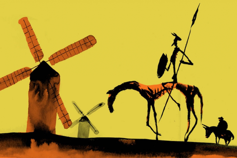 Ο Δον Κιχώτης δε διαφέρει πολύ από εμάς: πολύ μικροί κι αδύναμοι να αντιμετωπίσουμε τους πραγματικούς εχθρούς μας, κατασκευάζουμε απειλές και κυνηγάμε χίμαιρες, σε μια απέλπιδα προσπάθεια να νιώσουμε σημαντικοί σε έναν κόσμο που δε μας χρειάζεται.