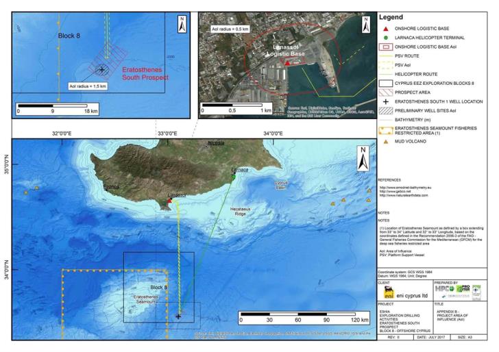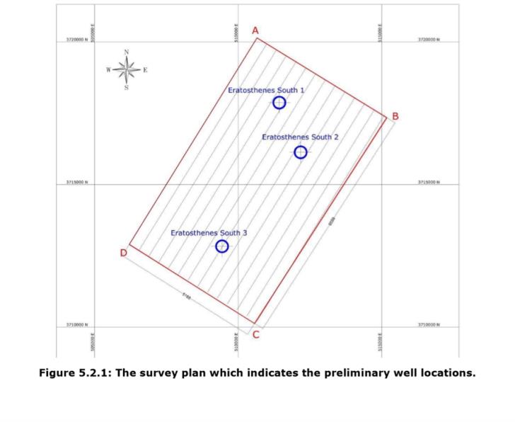 Στο τέλος του 2017 η ΕΝΙ προχώρησε και σε διαδικασίες αδειοδότησης στον εν λόγω στόχο. Πρόκειται για τον στόχο “Ερατοσθένης Νότιο” και το σημείο γεώτρησης είχε καθοριστεί το σημείο “3”, ακριβώς λόγω και της διαμόρφωσης, κλήσεων κ.τ.λ. της επιφάνειας του βυθού.