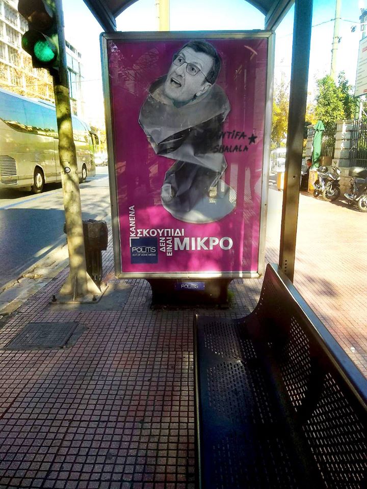 Η πραγματικότητα είναι ότι υπάρχει αντίστοιχη καμπάνια, με πολλές αφίσες κυρίως σε στάσεις λεωφορείων και η ομάδα Antifa Live διαπομπεύει τον δημοσιογράφο κολλώντας στη θέση που βρίσκονται τα απορρίμματα φωτογραφίες του.
