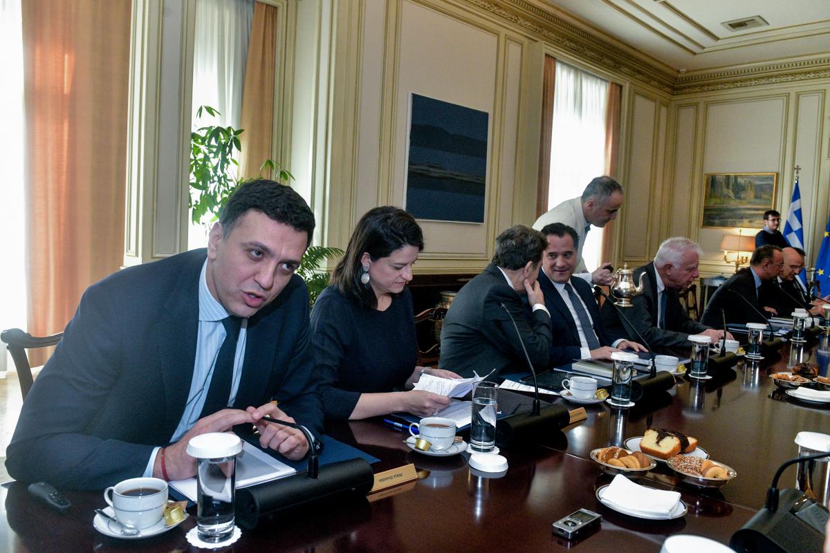 Συγχαρητήρια στον υπουργό Προστασίας του Πολίτη Μιχάλη Χρυσοχοϊδη, για την Αντιτρομοκρατική και τις συλλήψεις στα Εξαρχεία και στον υπουργό Οικονομικών Χρήστο Σταϊκούρα, για την επιτυχημένη έκδοση του ομολόγου έδωσε ο πρωθυπουργός Κυριάκος Μητσοτάκης κατά την έναρξη της συνεδρίασης του υπουργικού Συμβουλίου πριν από λίγο.