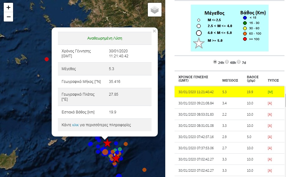 Σύμφωνα με το Γεωδυναμικό Ινστιτούτο ο σεισμός είχε μέγθος 5,3 Ρίχτερ και το εστιακό του βάθος ήταν 19,9 χλμ.