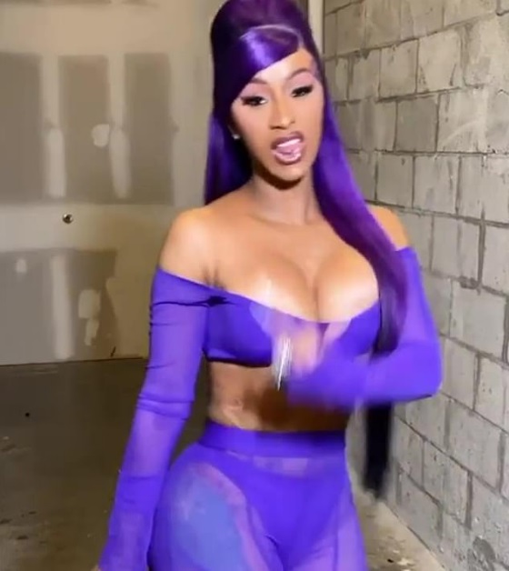 Τη βράδυ της Δευτέρας, η 27χρονη ράπερ μοιράστηκε στο Instagram τη μωβ εμφάνισή της.