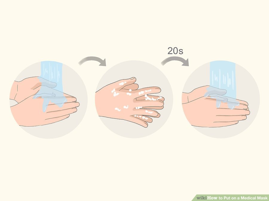 1.Πριν αγγίξετε μια καθαρή ιατρική μάσκα, πλύνετε καλά τα χέρια σας με σαπούνι και νερό.
