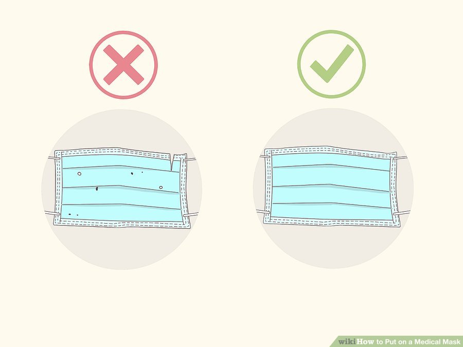 Μόλις πάρετε μια νέα (αχρησιμοποίητη) ιατρική μάσκα από το κουτί, ελέγξτε την για να βεβαιωθείτε ότι δεν περιέχει ελαττώματα, τρύπες ή δάκρυα στο υλικό. Εάν η μάσκα έχει κάτι από τα παραπάνω, πετάξτε την μακριά και επιλέξτε μια άλλη (μη χρησιμοποιημένη) μάσκα από το κουτί.