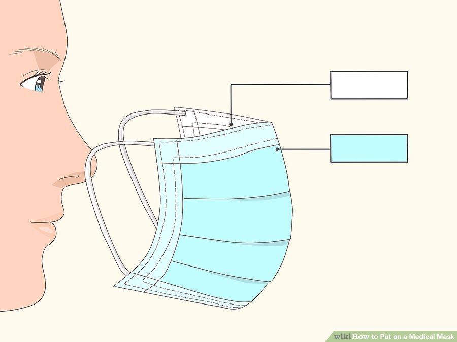 Το εσωτερικό των περισσότερων ιατρικών μασκών είναι λευκού χρώματος, ενώ το εξωτερικό έχει κάποιου είδους χρώμα. Πριν την εφαρμογή της μάσκας στο πρόσωπό σας, βεβαιωθείτε ότι η λευκή πλευρά της μάσκας είναι στραμμένη προς το πρόσωπό σας.