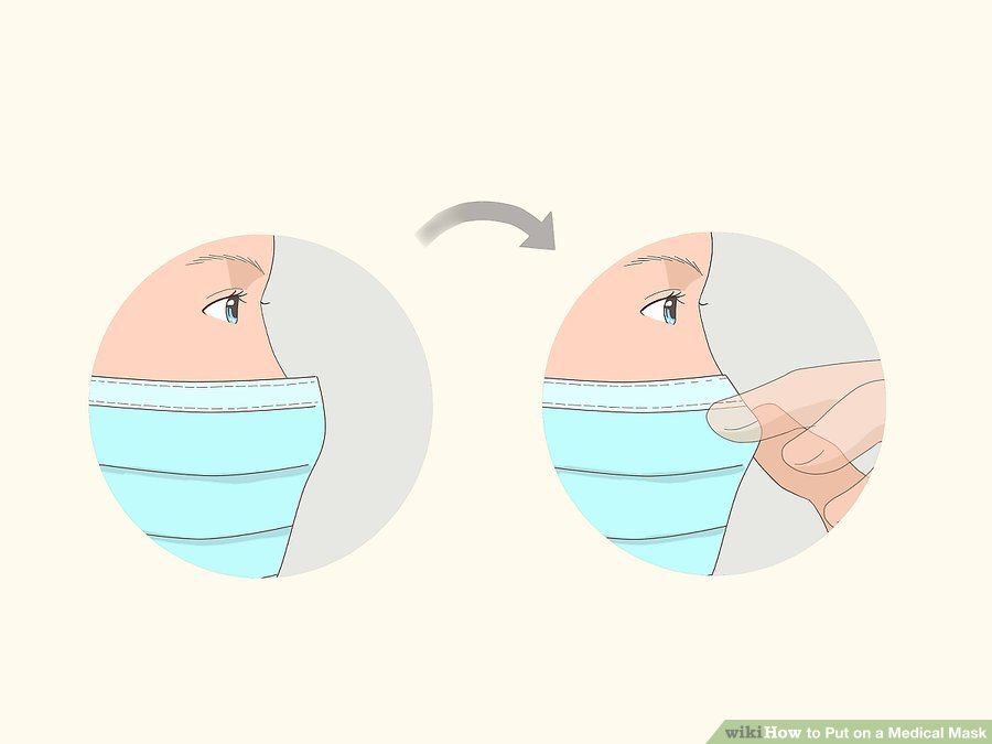 Τώρα που η ιατρική μάσκα είναι στη θέση της στο πρόσωπό σας, χρησιμοποιήστε το δείκτη και τον αντίχειρά σας για να πιέσετε το εύκαμπτο τμήμα της άνω άκρης της μάσκας γύρω από τη γέφυρα της μύτης σας.
