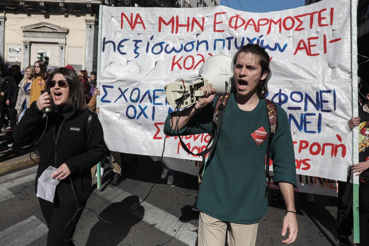 Στο κεντρο της Αθήνας διαδήλωσαν μαθητές, διεκδικώντας, μεταξύ άλλων, τη μη εφαρμογή της εξίσωσης των πτυχίων των ΑΕΙ με αυτά των κολεγίων, ενώ ζητούν και να καλυφθούν τα κενά που υπάρχουν σε εκπαιδευτικό προσωπικό αλλά και οι ελλείψεις των υποδομών στα σχολεία.