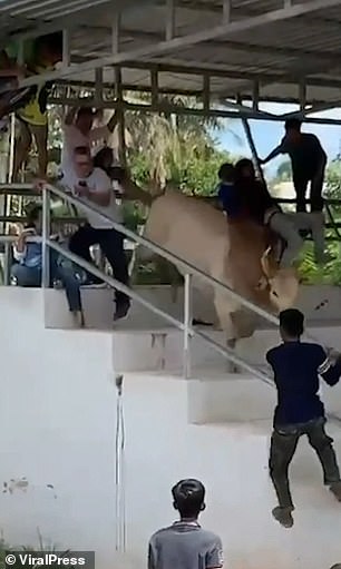 Το γεογνός έγινε στην Ταϊλάνδη. Μια γυναίκα καθόταν στη κερκίδα και παρακολουθούσε Ταϊλανδέζικες ταυρομαχίες όταν ο ταύρος έσπασε το προστατευτικό χώρισμα στις κερκίδες και της επιτέθηκε.