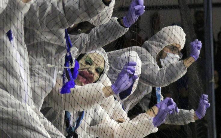 Συνδυάζοντας την εμφάνιση κρουσμάτων του ιού στη χώρα μας με τις απόκριες, εμφανίστηκαν στο Ιβανώφειο με στολές και μάσκες προστασίας από τον κορονοϊό, στον οποίο αναφέρθηκαν και με πανό που σήκωσαν.