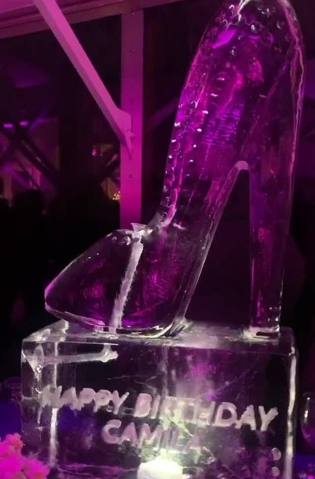 Ένα βίντεο αποκάλυψε την τούρτα γενεθλίων της, η οποία είχε το σχήμα κολοκύθας από την «Σταχτοπούτα». Σε άλλο βίντεο φαίνεται ένα γιγάντιο γλυπτό από πάγο με τη μορφή μιας ψηλοτάκουνης γόβας.