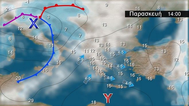 Η θερμοκρασία στη Δυτική Μακεδονία θα κυμανθεί από 4 έως 10 βαθμούς, στην υπόλοιπη Μακεδονία και στη Θράκη από 8 έως 16, στα κεντρικά και νότια ηπειρωτικά από 8 έως 17, στα νησιά του Ιονίου από 9 έως 13, στα νησιά του Ανατολικού Αιγαίου από 12 έως 18, στα νησιά του υπολοίπου Αιγαίου από 11 έως 17 και στην Κρήτη από 12 έως 21 βαθμούς. Σημειώνεται ότι η ελάχιστη θερμοκρασία αναμένεται προς το τέλος του εικοσιτετραώρου.