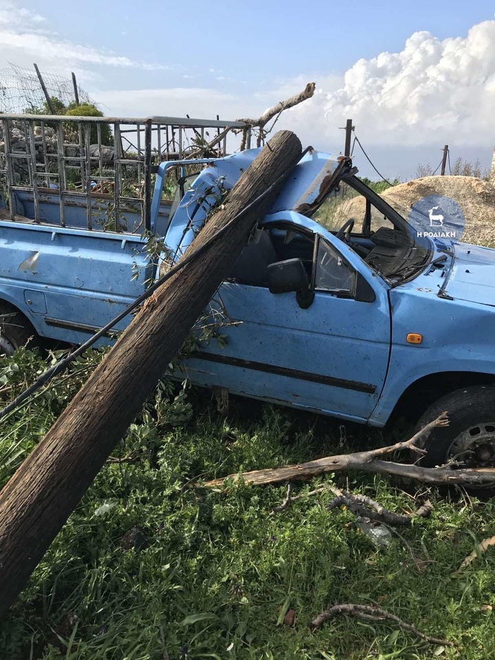 Σύμφωνα με το rodiaki.gr, οι δυνατοί άνεμοι που έπνεαν την Πέμπτη στο νησί, όπως έγινε γνωστό προκάλεσαν ζημιές μεταξύ άλλων στο αεροδρόμιο, σε καλλιέργειες, κτηνοτροφικές εγκαταστάσεις και ελαιόδεντρα.
