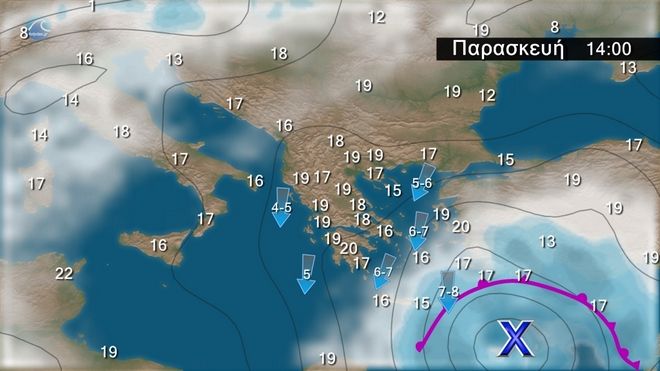 Καιρός: Νεφώσεις με βροχές και σποραδικές καταιγίδες, οι οποίες θα είναι κατά τόπους ισχυρές, αρχικά τη δυτική Κρήτη και βαθμιαία στα υπόλοιπα τμήματα της Κρήτης και τις Κυκλάδες μέχρι τις βραδινές ώρες.