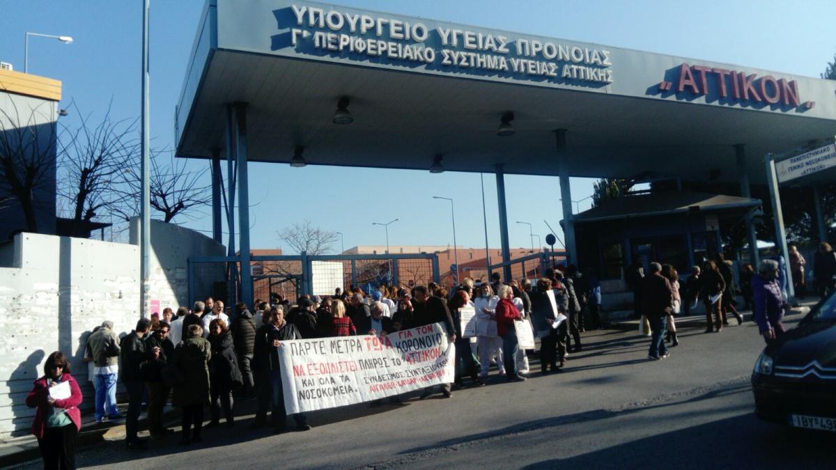 Στάση εργασίας και συγκέντρωση διαμαρτυρίας πραγματοποίησαν το πρωί της Πέμπτης από τις 7:00 μέχρι τις 10.00 οι εργαζόμενοι του νοσοκομείου αναφοράς περιστατικών κορωνοϊού «Αττικόν».