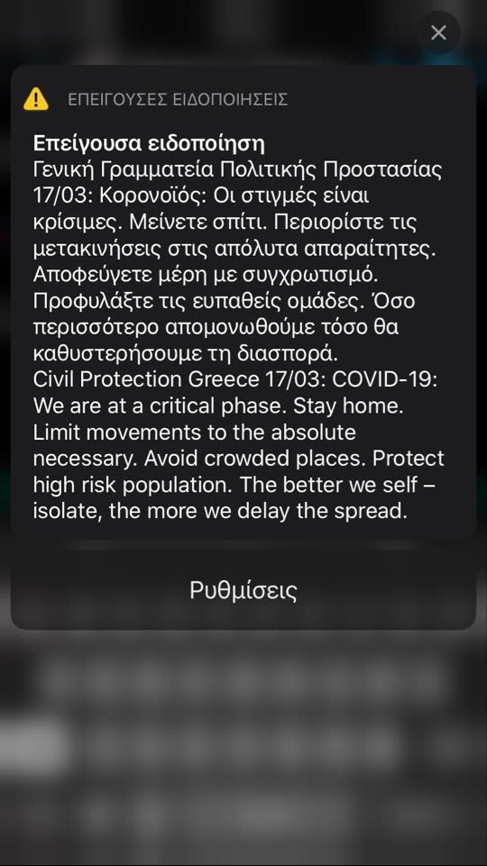 Με ένα νέο μήνυμα από το 112, η ΓΓΠΠ προειδοποίησε τον κόσμο να μείνει σπίτι για τον κορωνοϊό.