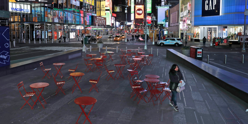 Νέα Υόρκη, η πόλη που δεν κοιμάται ποτέ, κοιμήθηκε. Εν μέσω της πανδημίας του κορωνοϊού και με τις ΗΠΑ να μετράνε και αυτές νεκρούς και κρούσματα από τον ιό, λήφθηκαν μέτρα στην «πόλη που δεν κοιμάται ποτέ», ως μέτρο για ανακοπή της εξάπλωσης του κορωνοϊού. Επιχειρήσεις όπως οι καφετέριες, τα μπαρ, τα εστιατόρια και οι κινηματογράφοι έκλεισαν από τις 20:00 το βράδυ της Δευτέρας καθώς η πολιτεία παίρνει τα απαραίτητα μέτρα για την διακοπή της εξάπλωσης του ιού.