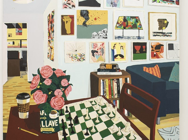 Πολλοί από εμάς έχουμε την τύχη να έχουμε μια καλή συλλογή από επιτραπέζια. Μήπως ήλθε ο καιρός να κατατροπώσουμε τη βαρεμάρα μας επειδή είμαστε κλεισμένοι μέσα σε τέσσερις τοίχους «φωνάζει» ο πίνακας της Hilary Pecis «Harper’s Game» (2019);