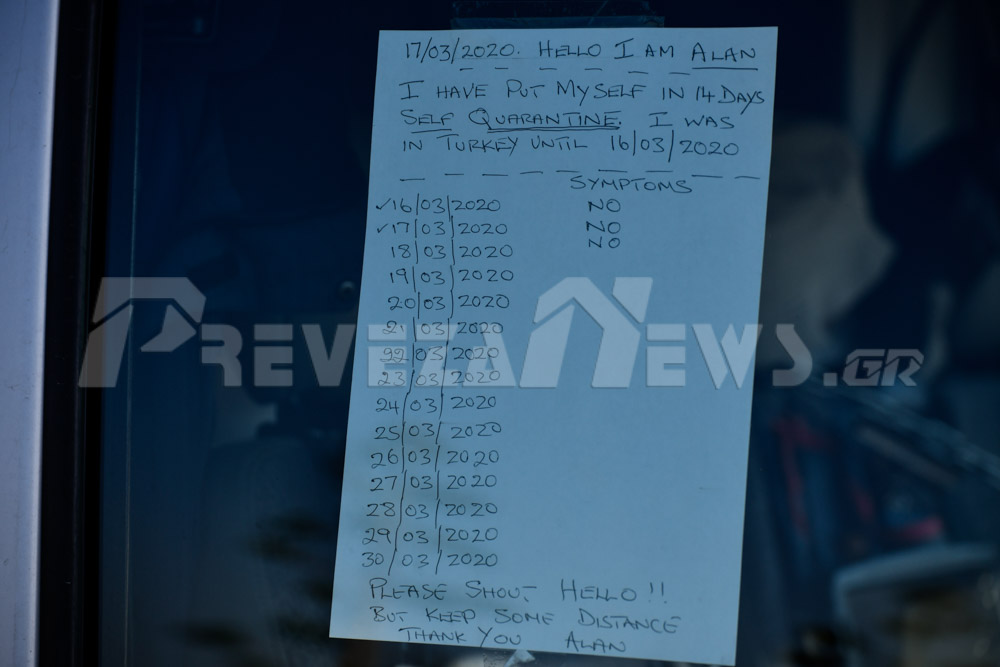 Ο Άλαν, όπως ονομάζεται, είχε αναρτήσει στο παράθυρο της πόρτας σημείωμα που έγραφε πως βρίσκονταν στην Τουρκία πριν από 3 μέρες και πως ο ίδιος έχει μπει σε καραντίνα.
